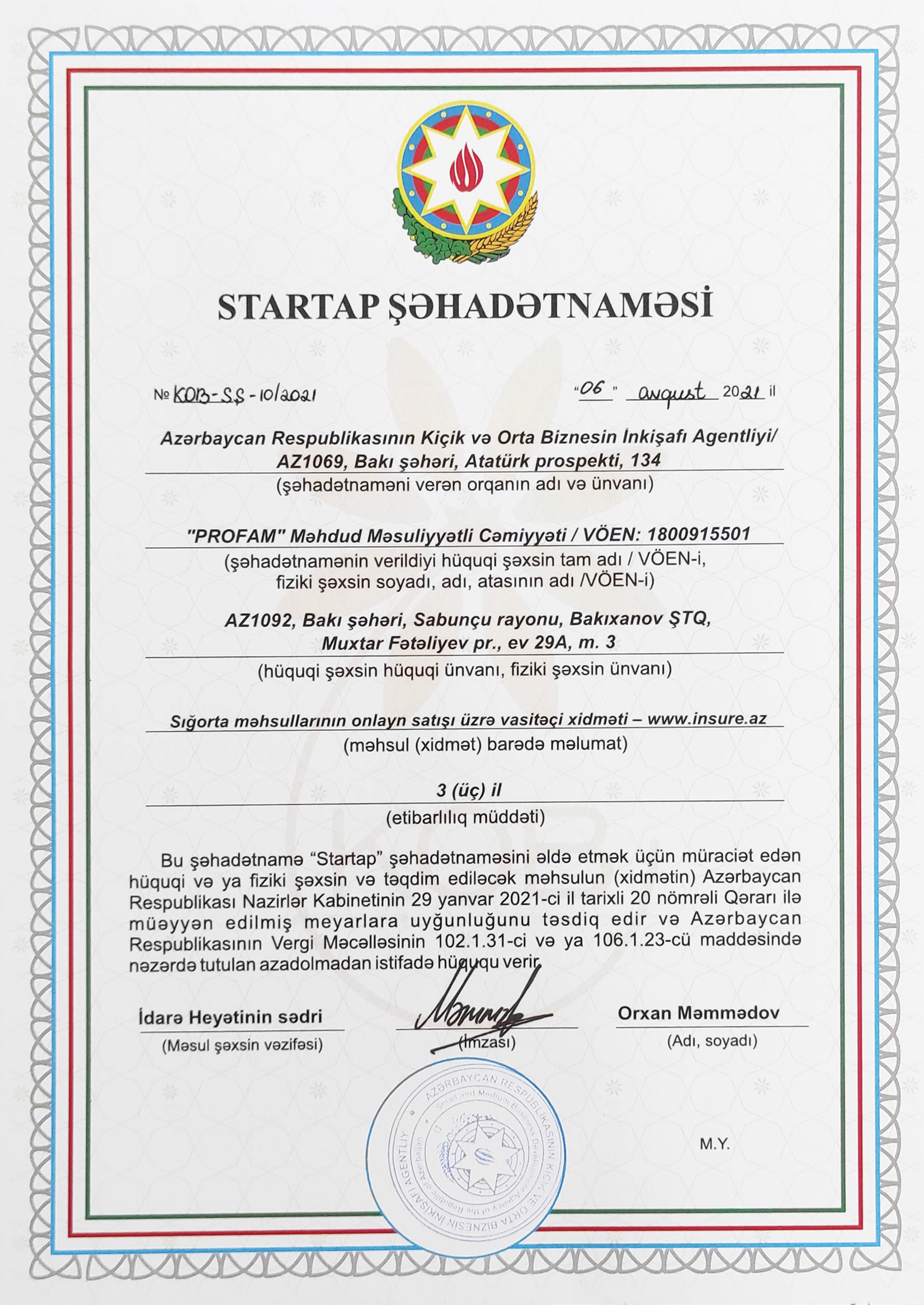 www.insure.az saytı, Profam şirkəti tərəfindən 05.05.2016-cı il tarixində yaradılmış, Azərbaycanın ilk mərkəzləşdirilmiş onlayn sığorta portalıdır.